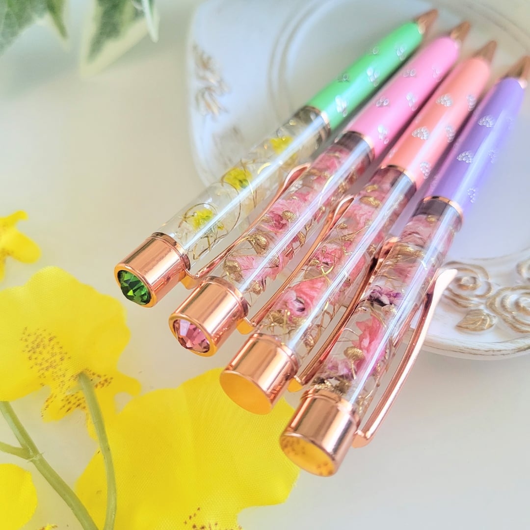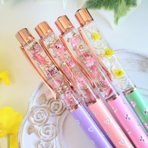 かすみ草とデルフィニュームのハーバリウムボールペン | プチギフト | ピンク パープル グリーン
